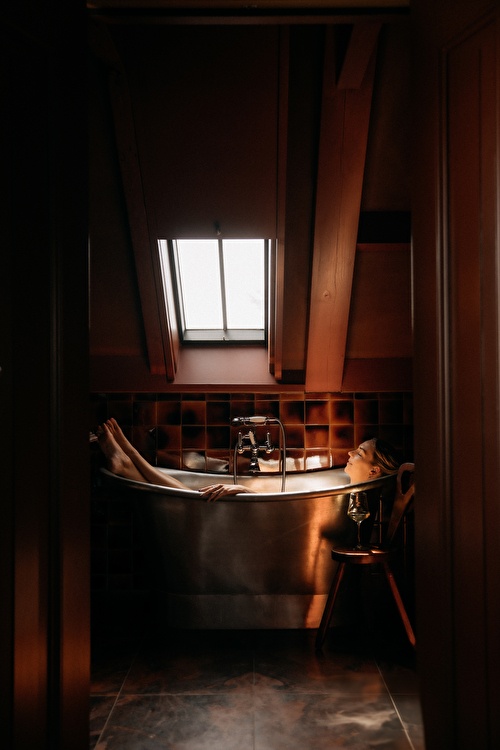 A lakeside boutique hotel frayed by tall grasses, laundered linen whispering in the wind and a row of gabled, clapboard houses in misty hues skirting along the water’s edge. Here is a time-stood-still hamlet, home to a handful of former fisherfolk, charming architecture, sail boats, coots, and our new hotel and restaurant.